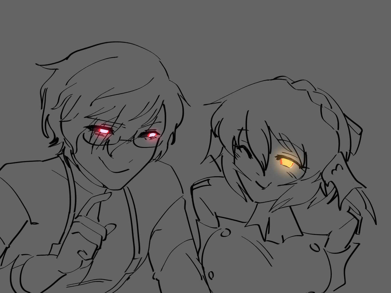 — Beyond her limbal rings, a bizarre and bright glow is washed over her eyes, the color itself akin to the volatile orange hue a crystal takes on when pulled to an extreme elemental charge.